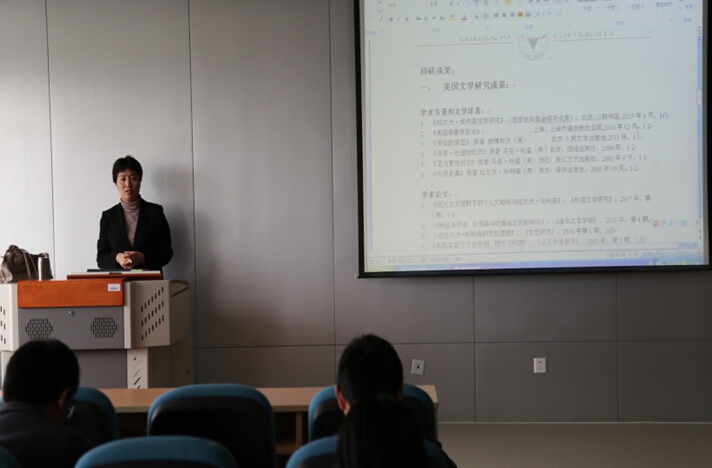 2017年4月7日下午3至5时,外国语学院在如心楼806室举办了题为《非裔美国文学研究的方法和思路》的专题讲座。讲座由博士生导师田俊武教授主持,邀请到杭州电子科技大学外国语学院院长、浙江大学外国语学院教授、博士生导师谭慧娟博士主讲,外国语学院英美文学专业教师和文学、翻译学方向的博士和硕士研究生听取了报告。