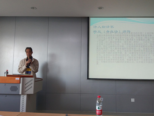 2017年5月15日,南开大学博士生导师王宏印教授应北航外国语学院邀请,在如新楼806为外院师生带来题为《悲情世界 诗化人生:穆旦的诗歌创作与翻译》的专题讲座,讲座由博士生导师文军教授主持,外语学院英美文学与翻译专业的教师和文学、翻译学方向的博士与硕士研究生听取了报告。