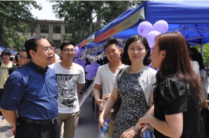 外国语学院09级的同学们饱含着四年来一贯的积极热情,清早便到达场地开始进行装饰展台等前期准备工作。8点半活动正式开始时,外国语学院精心装点的摊位,温馨亮丽——“最美笑脸墙”,“签名寄语”,“二手书市场”,“拍立得留影”… 真情流露的丰富内容,独具特色的活动形式,使外院的展区成为了一道亮丽的风景,正如外国语学院作为一个文科院系在学校浓厚的理工科背景下为大家带来的一袭饱含人文气息的清风。
